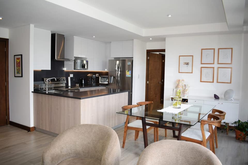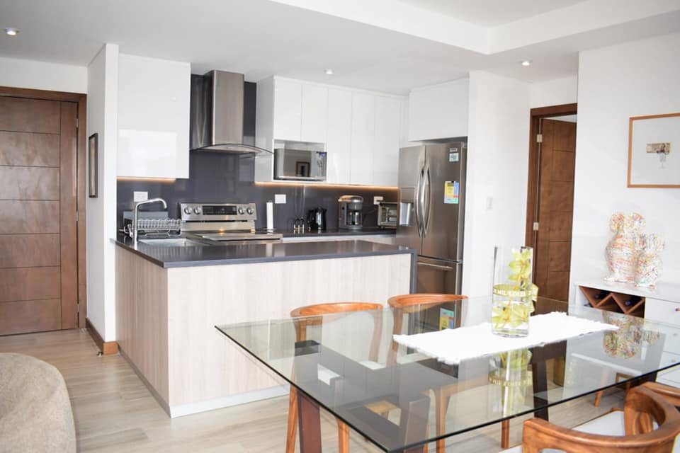 • Cocina abierta con línea blanca.
