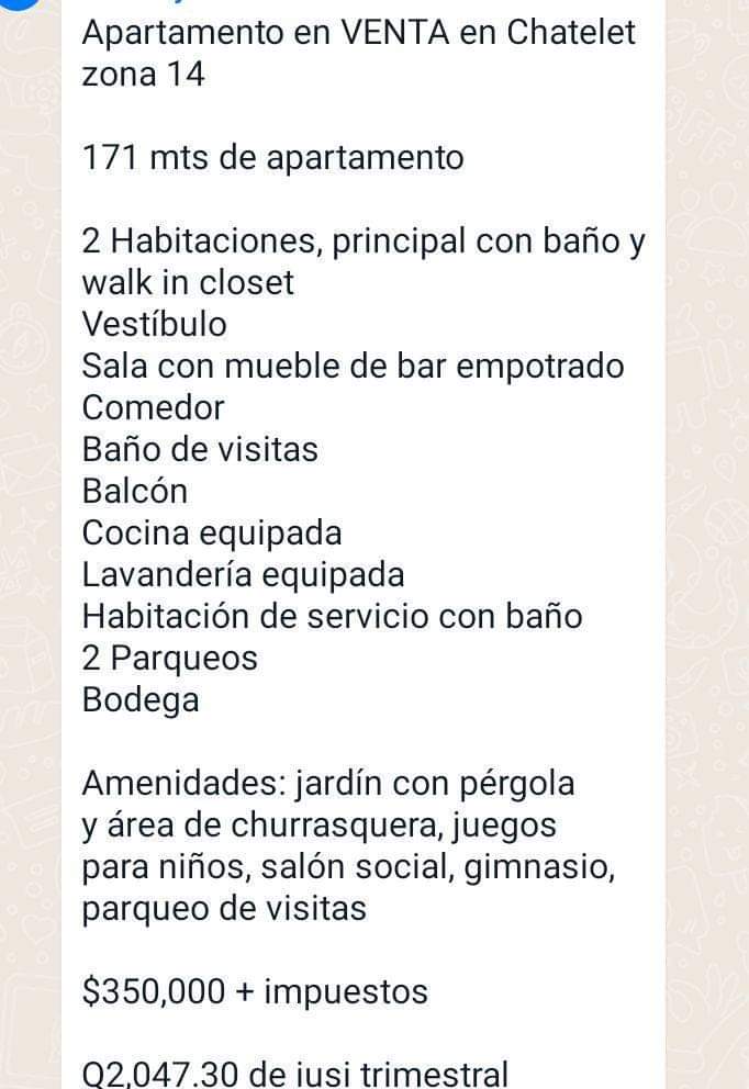 Apto en Venta,en Chatelet zona 14 dos habitaciones, $350.000+impuesto, Contacto