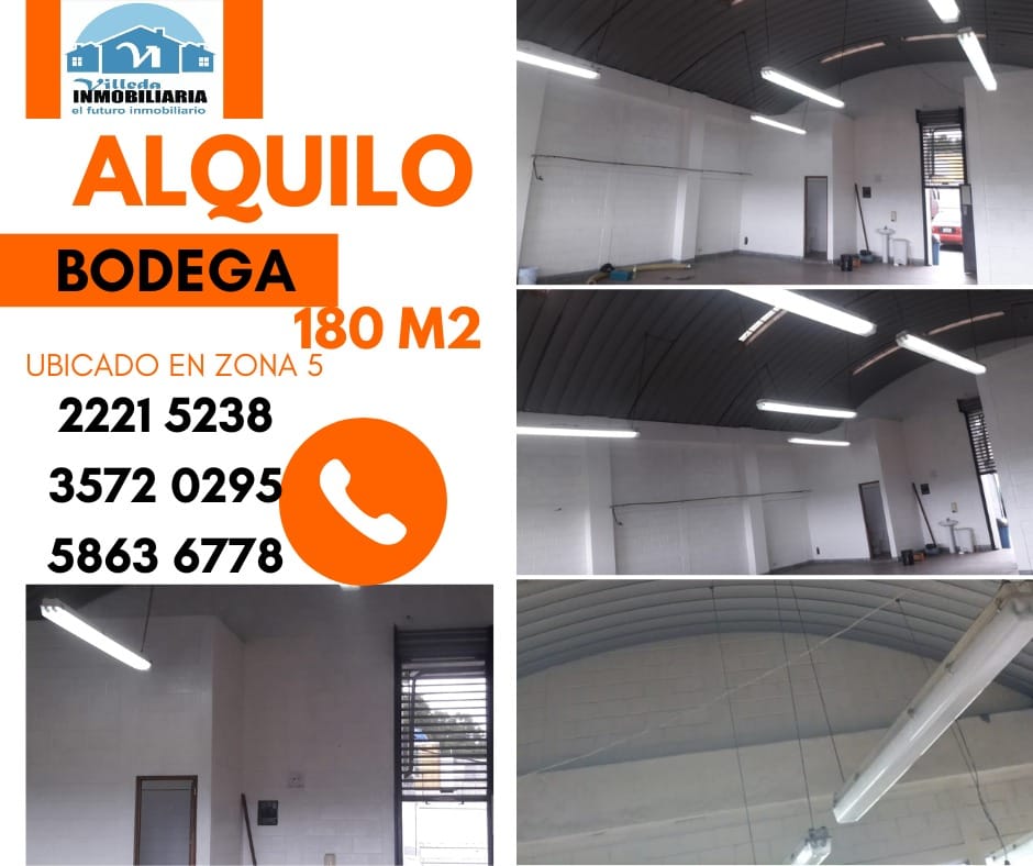 Bodega ubicada en zona 5 180 m² Llámanos para más información 2221-5238