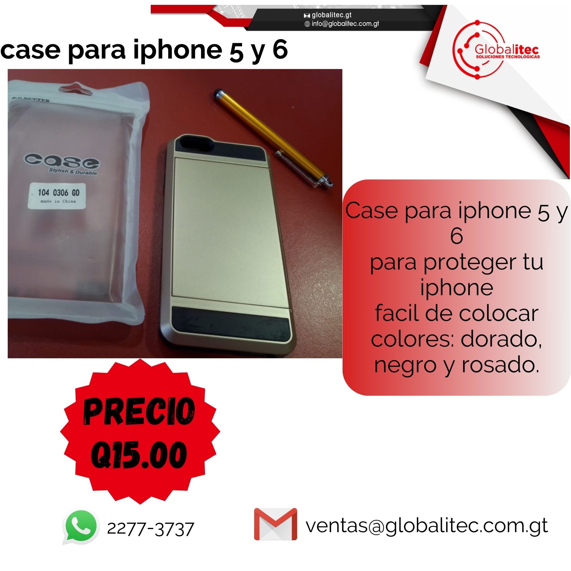 Case de iphone para iphone 5 y 6 colores: Dorado, rosado y negro facil de co