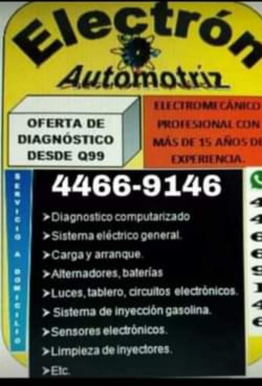Electromecánica automotriz a domicilio. OFERTA.. Diagnóstico desde Q150 4466-91