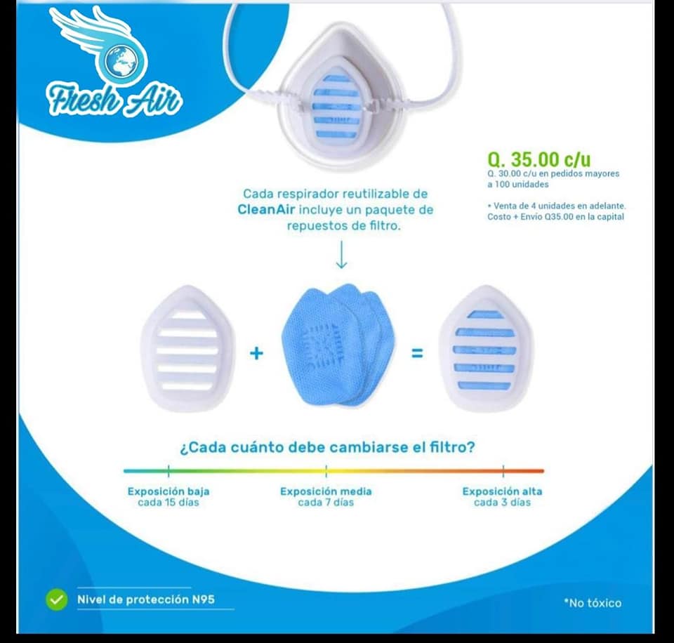 Cada mascarilla cuenta con 3 cambios de filtro