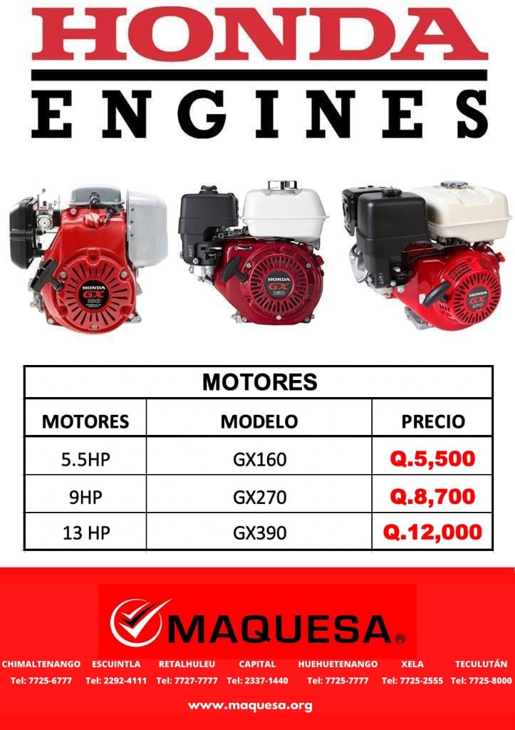 Motores Honda. En precios super accesibles disponibles en 4av. 14-53 zona 1 Escuintla o puedes comunicarte al 22924111 whatsapp 41468539 con gusto te atenderemos