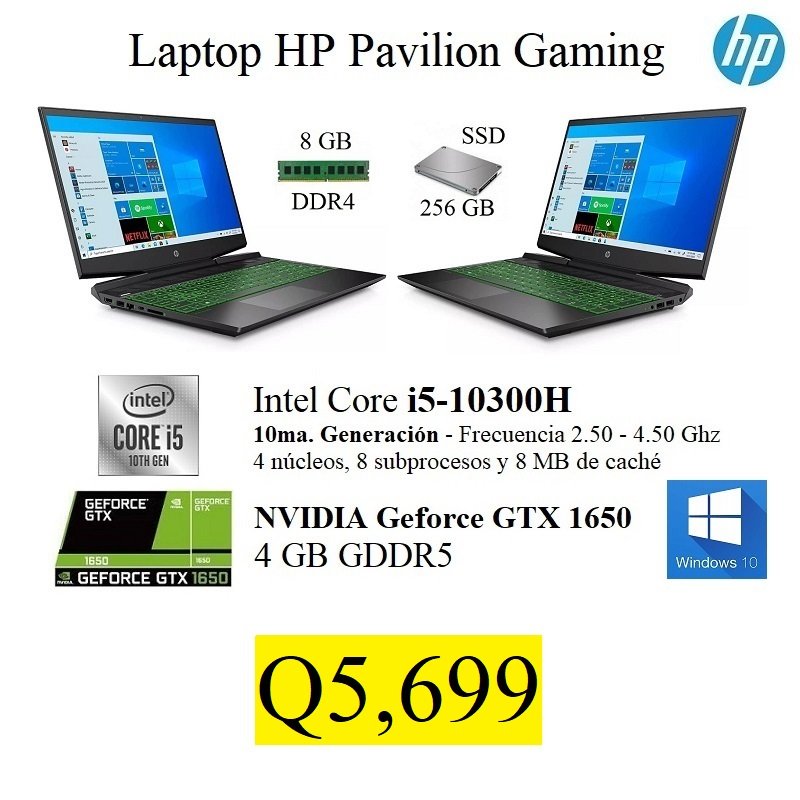 Tengo a la venta Laptop HP Pavilion Gamer NUEVA Y SELLADA de fábrica. El precio es fijo y el pago es en efectivo o transferencia únicamente. Con respecto a la entrega No cuento con local físico, pero entrego personalmente sin costo en colonia ubicada en zona 7 o algún centro comercial cercano para la seguridad de ambos. La laptop HP cuenta con las siguientes Características: