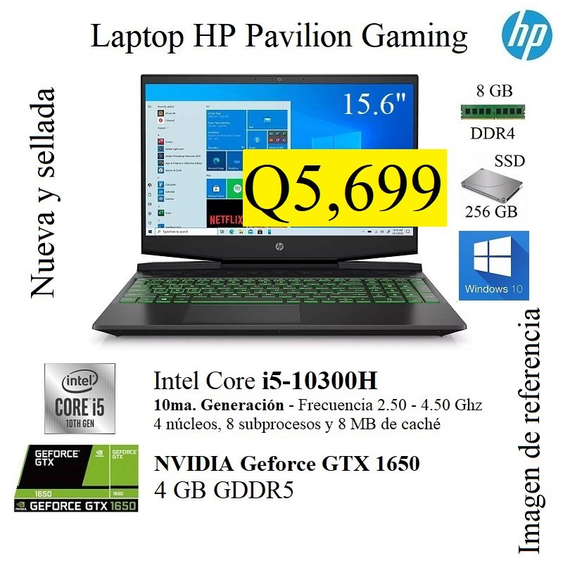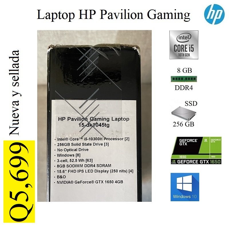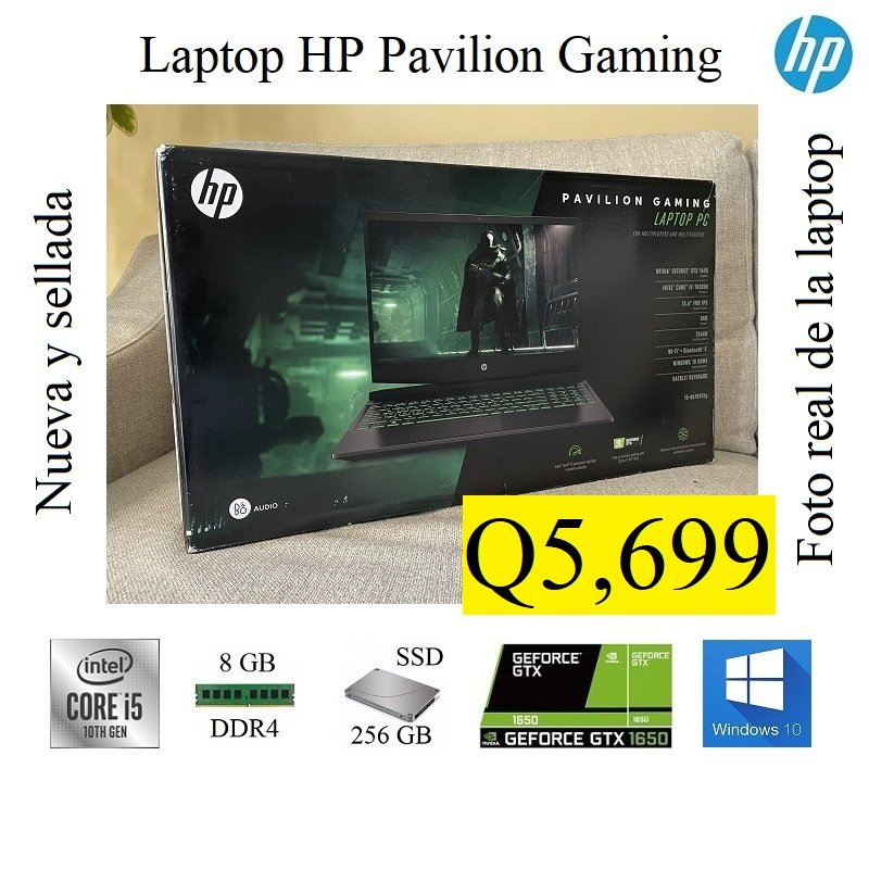 Tengo a la venta Laptop HP Pavilion Gamer NUEVA Y SELLADA de fábrica. El precio es fijo y el pago es en efectivo o transferencia únicamente. Con respecto a la entrega No cuento con local físico, pero entrego personalmente sin costo en colonia ubicada en zona 7 o algún centro comercial cercano para la seguridad de ambos. La laptop HP cuenta con las siguientes Características: