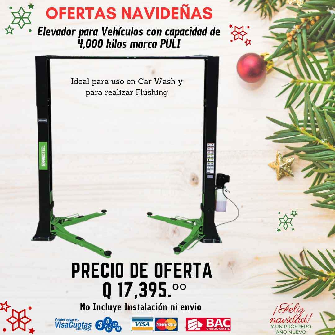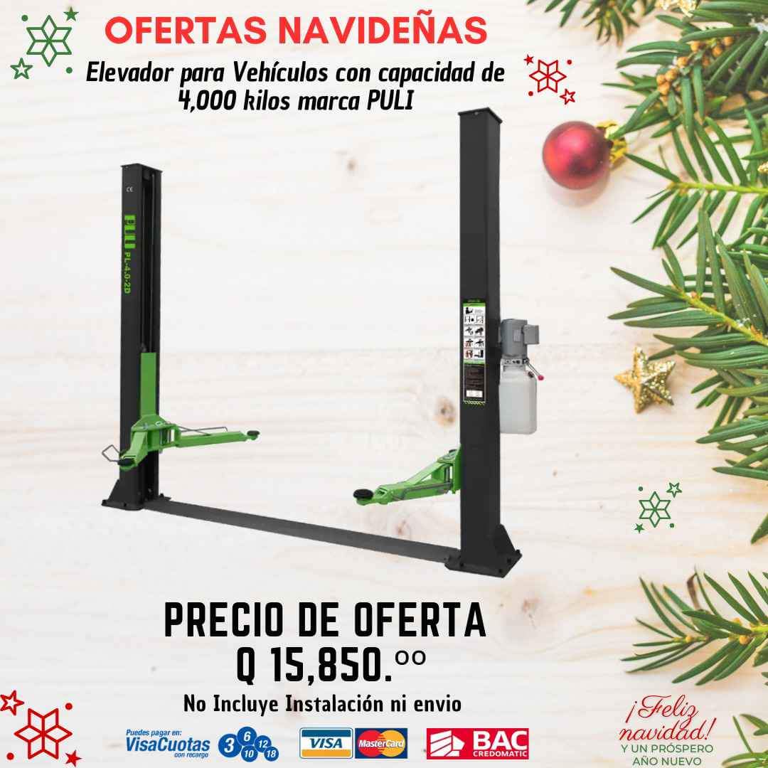 Ofertas Navideñas válida hasta el 31 de diciembre o agotar existencias Elevadores para Vehículos Capacidad de 4,000 kilos Marca PULI Corriente 220 voltios Envíos a todo el país