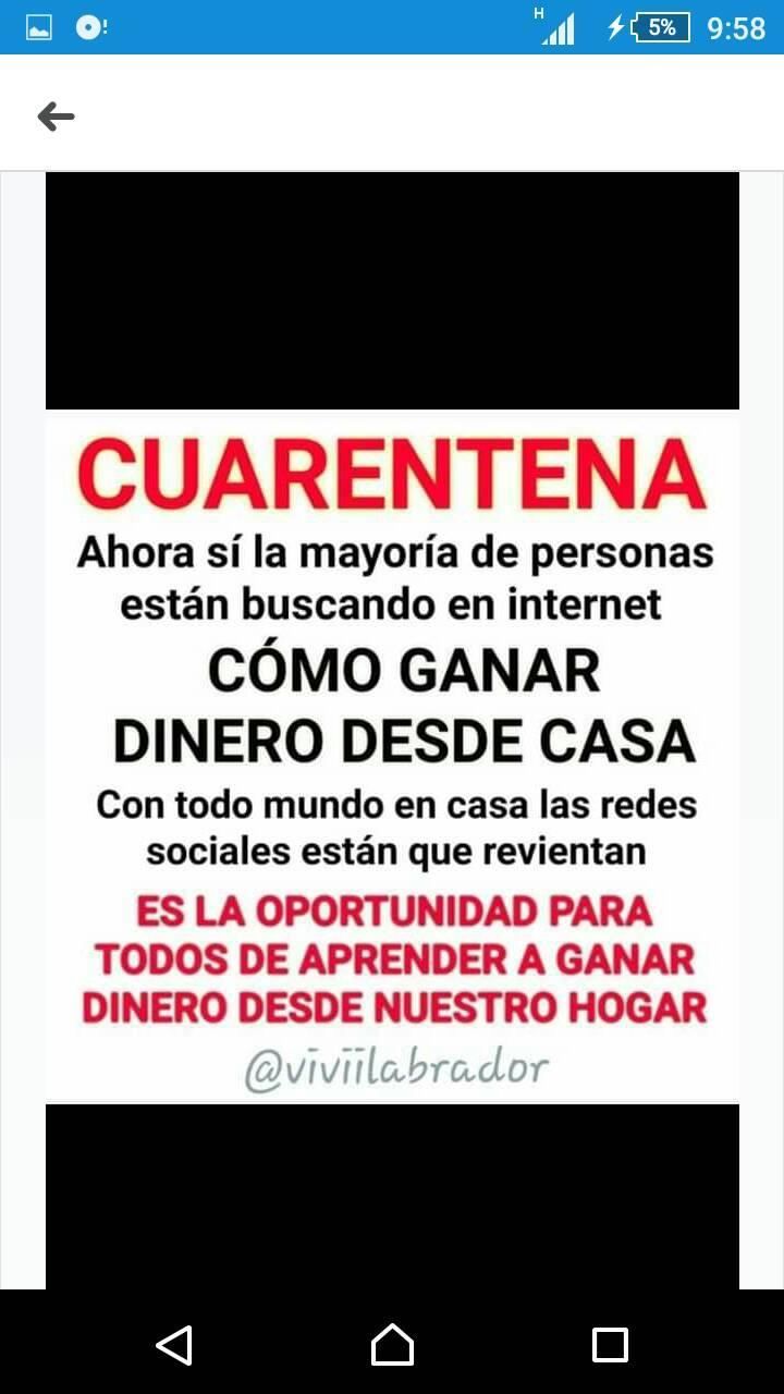 Quieres GANAR DIARIO 10$20$30$ diarios o al cambio del día, solo usando tu teléfono inteligente y tus redes sociales?NOTA: PUEDE RECIBIR EL DINERO COMO USTED LO QUIERA, DOLARES, EFECTIVO, TRANSFERENCIA BANCARIAS, DEPENDIDO EN EL PAÍS QUE SE ENCUENTRE!!!!Muy fácilte sorprenderán las ganancias