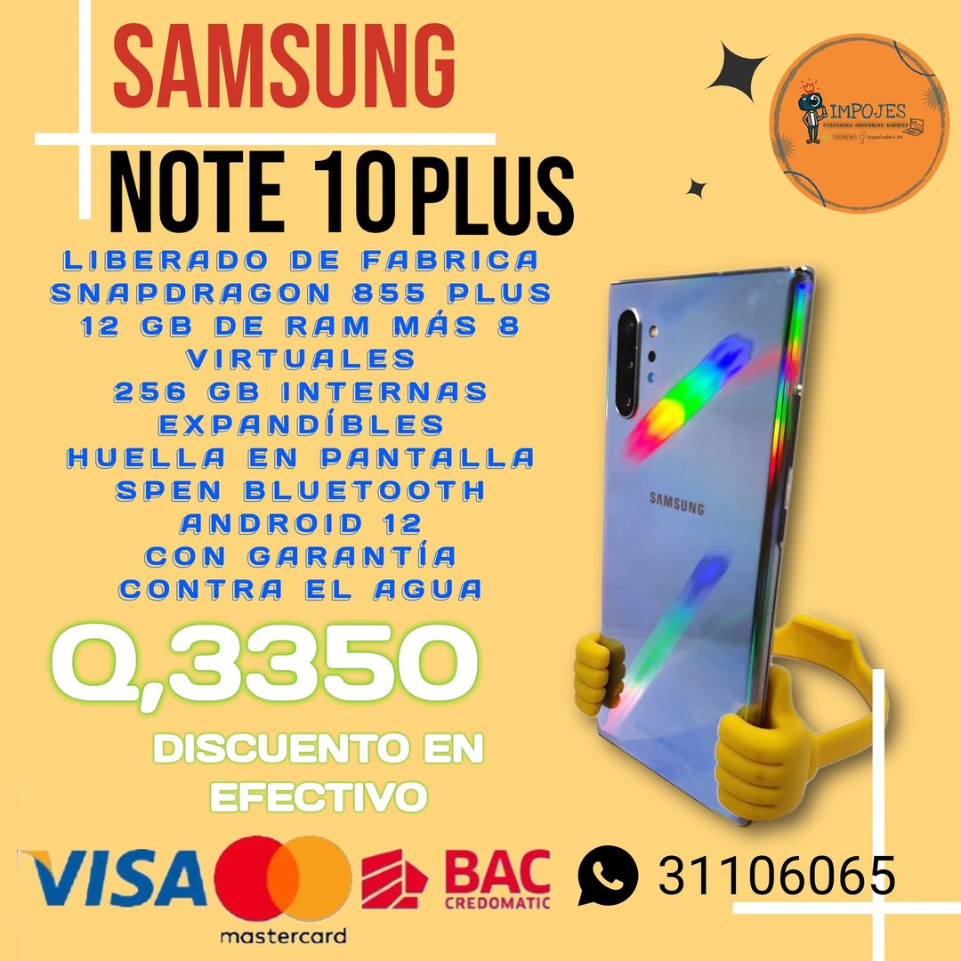 SAMSUNG NOTE 10 PLUS AURORA GLOW LIBERADO DE FABRICA SNAPDRAGON 855 PLUS 12 G