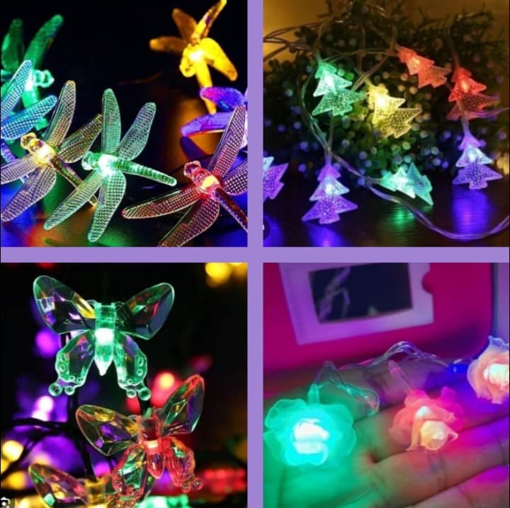 Serie de luces lineal de 3 metros Copos de nieve, libélulas, mariposas, pinos,