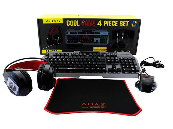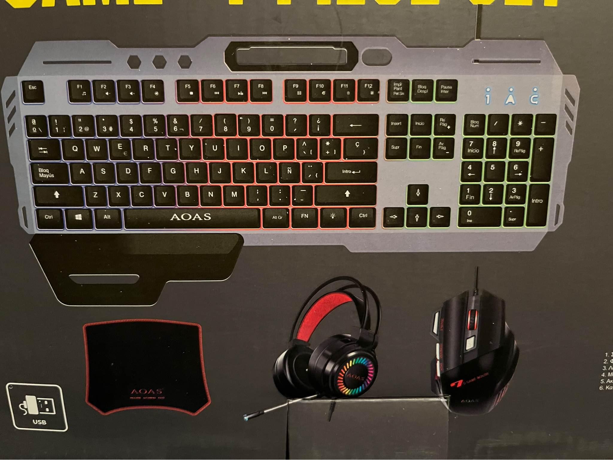 Set de 4 piezas AOAS -Teclado – Mouse – Mouse Pad – Auriculares Teclado i