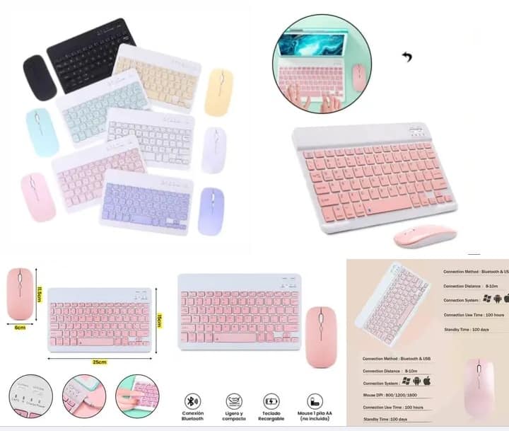 Teclado y mouse bluetooth, fundas para laptop, fundas para tablet, protector de