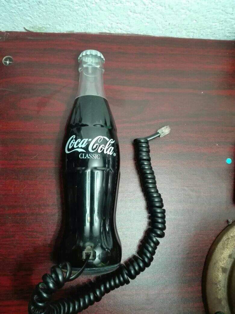 Telefono Coca Cola, para decoracion o adorno, si se conecta recibe llamadas se puede hablar, no funciona para realizar llamadas.