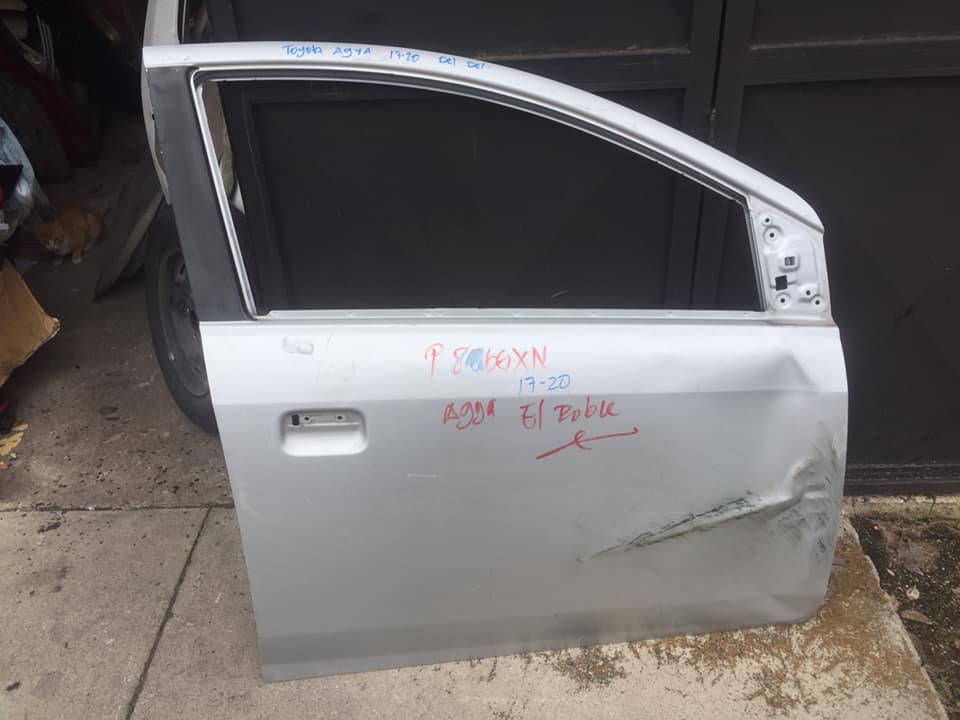 Tenemos Puerta Delantera Derecha sólo lamina usada pequeño detalle a reparar para el Toyota Agya le hace a modelos 2017-2021 también contamos con bompers delanteros, traseros, capos, Silvines y compuertas, respondo llamadas y mensajes de whatsapp al 4116-1411 y 5208-0033 será un gusto atenderles.