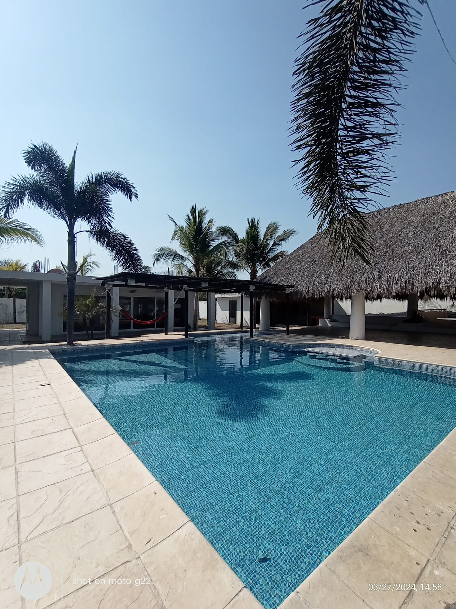 -Piscina Grande Filtrada, con su pérgola y hamaca