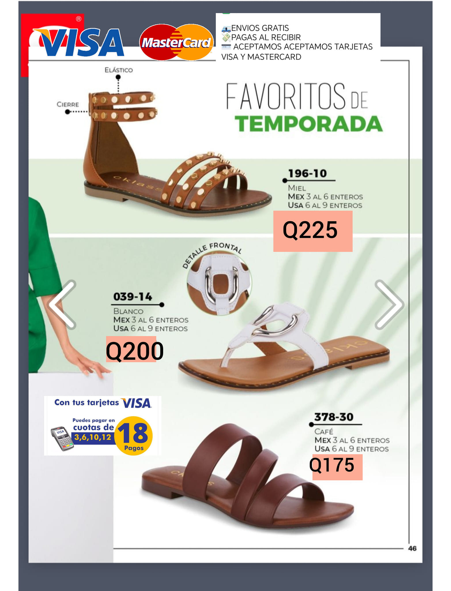 Zapatos y sandalias para damas de diferentes estilos y colores envíos a todo Guatemala pago contra entrega mayoristas precios especiales pago con tarjeta de crédito y débito visa y mástercar visacuotas 3 a 12 visa cuotas WhatsApp 46994439